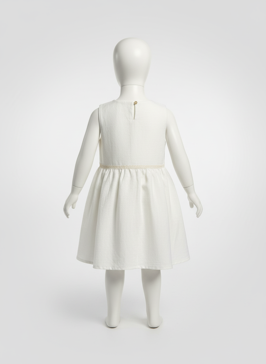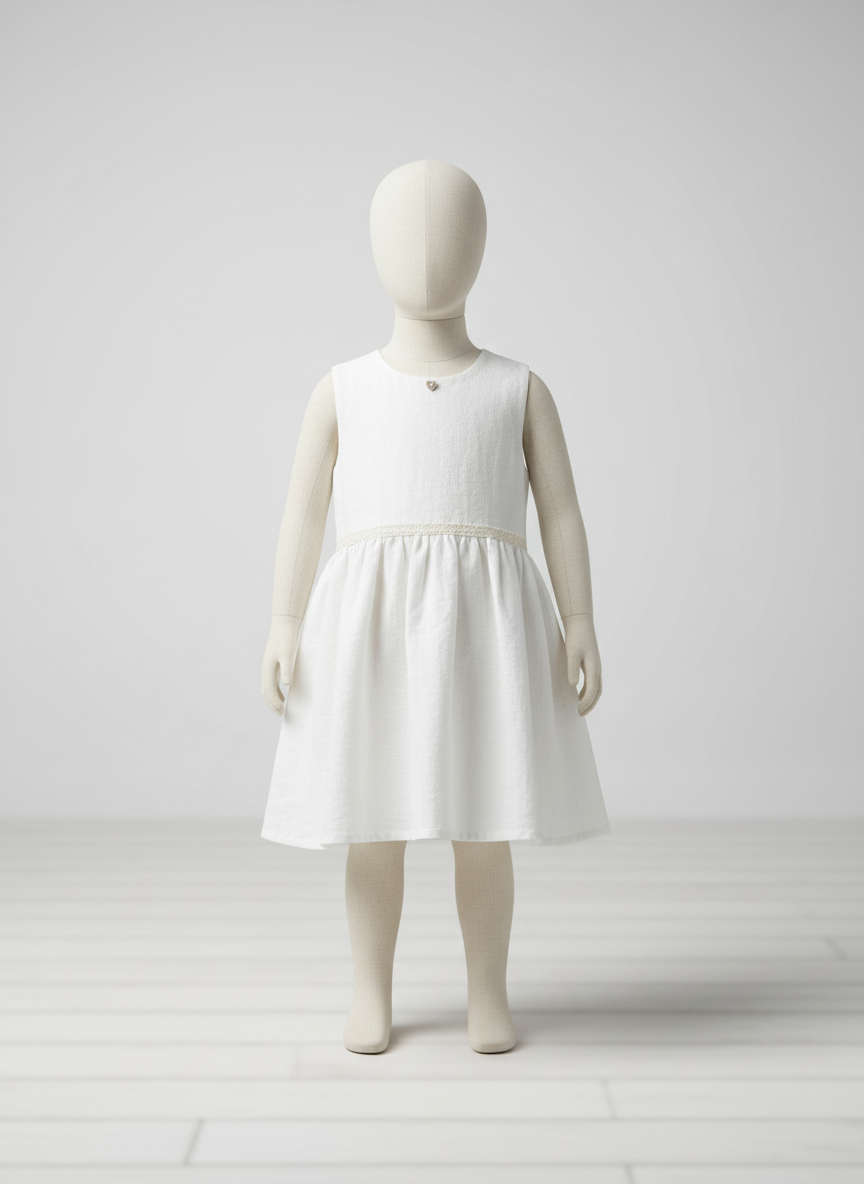 Zeitloses Kinderkleid-Set aus Leinen-Baumwoll-Mix – handbestickt & festlich